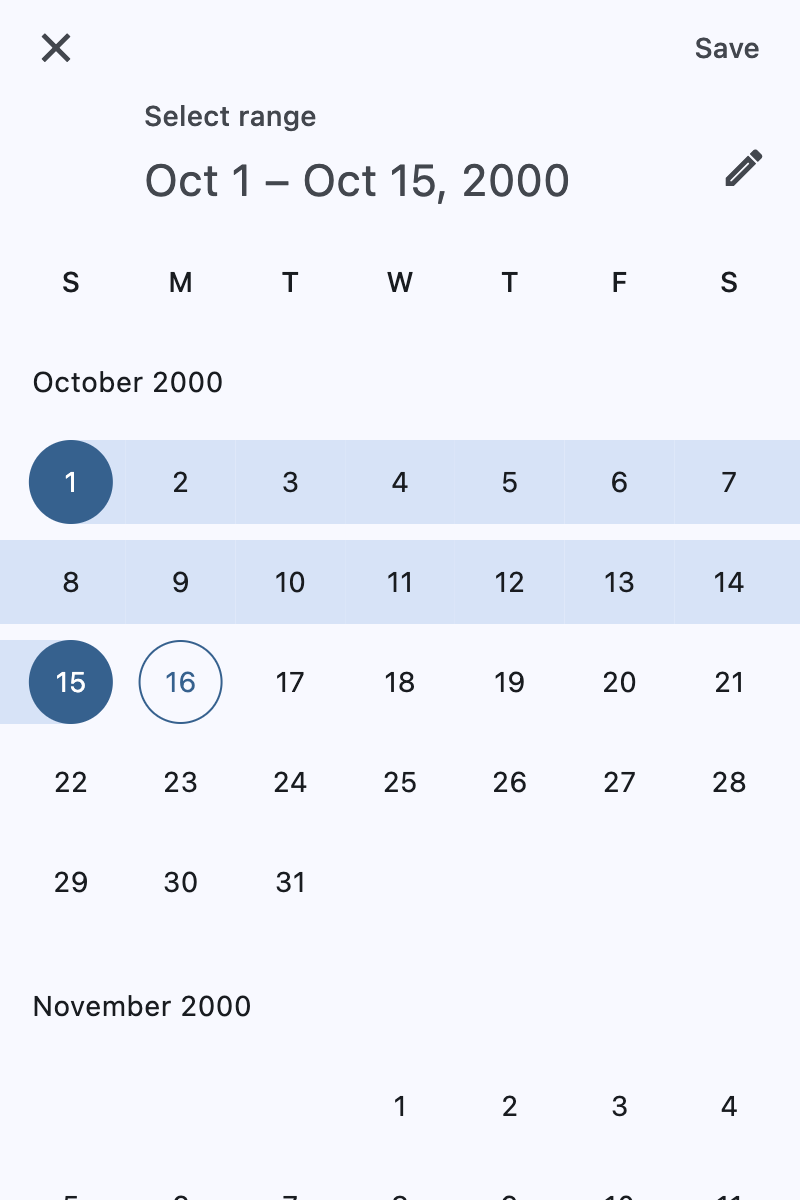start_value(DateTimeValue | None) –The selected start date that the picker should display.